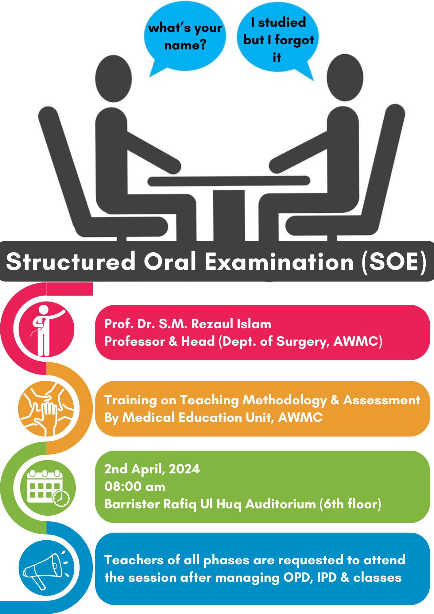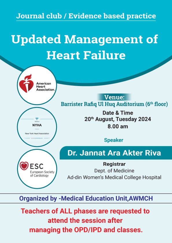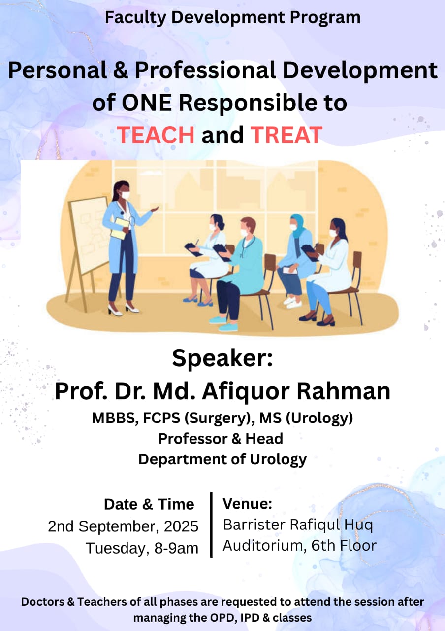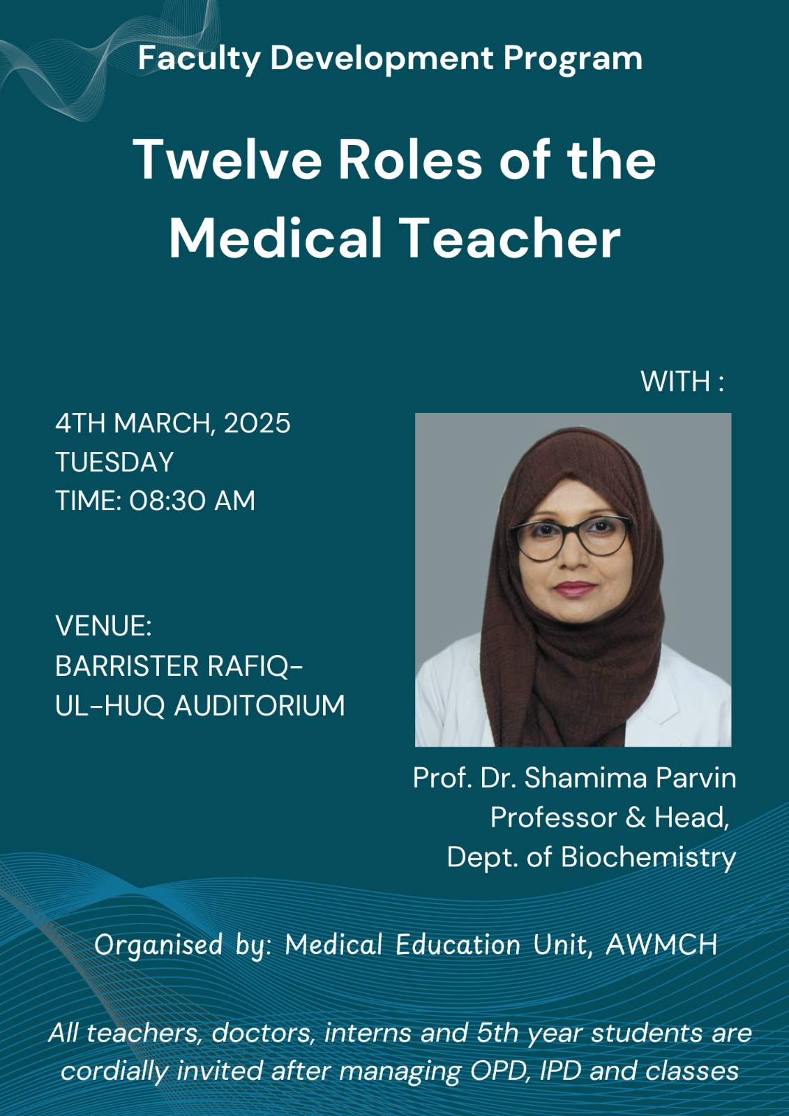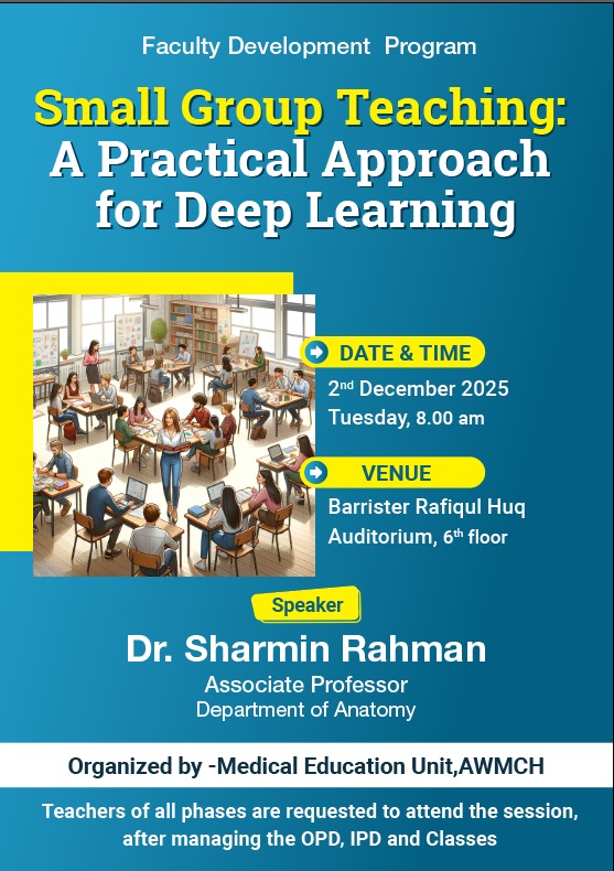 Ad-Din Women’s Medical College has a well-established and fully functioning Medical Education Unit (MEU). It was established on 18th July 2023. It comprises of four subunits and each of them is responsible for organizing different sessions per week (on every Tuesday). These four subunits are-